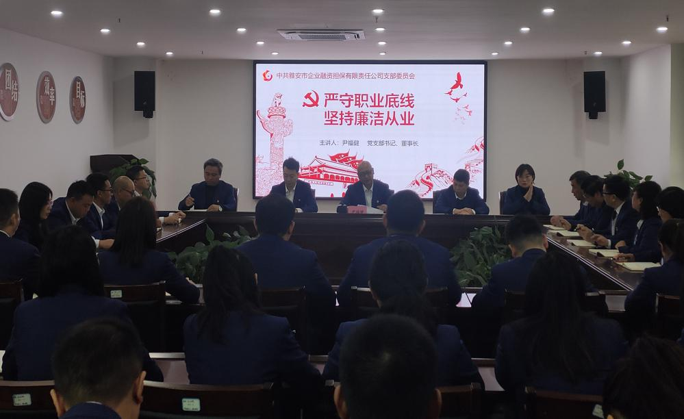 三是講黨課強黨性。市擔保公司黨支部書記、董事長尹福健以“嚴守職業(yè)底線,堅持廉潔從業(yè)”為題,圍繞“認識新形勢反腐敗斗爭的形勢、腐敗出現(xiàn)的原因和防范措施、學習廉潔法律法規(guī),防范廉潔風險、增強黨員領導干部拒腐防變的能力”四個方面,結合公司實際為黨員干部上了一堂生動的廉政黨課,警示黨員干部要增強“四個意識”,堅定“四個自信”,做到“兩個維護”,強化黨性修養(yǎng),自覺增強“免疫力”。