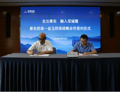 2020年7月15日,市擔(dān)保公司與四川省金玉融資擔(dān)保有限公司(以下簡稱"四川金玉擔(dān)!保⿷(zhàn)略合作簽約儀式在成都金鼎金融大廈舉行,此舉是市擔(dān)保公司走出雅安,主動融入成渝雙城經(jīng)濟(jì)圈的重要舉措之一。