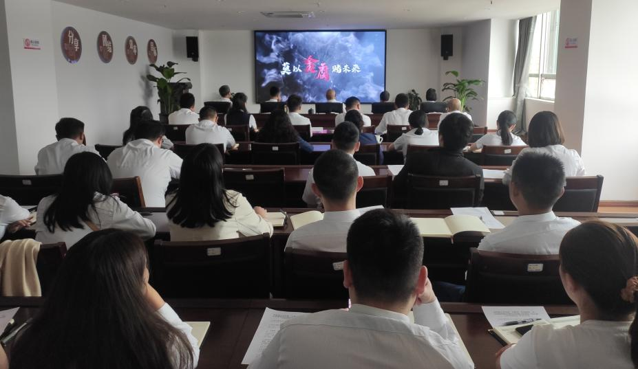 觀看一次警示教育片,敲廉潔警鐘。組織全體干部職工觀看《莫以貪腐賭未來》系列警示教育片,以案釋紀(jì)、以案說法。讓大家深刻汲取案件教訓(xùn),舉一反三、防微杜漸,準(zhǔn)確把握好手中權(quán)利,時刻保持清醒,不觸碰紅線,不逾越底線,為全體干部職工敲響廉潔從業(yè)的警鐘。