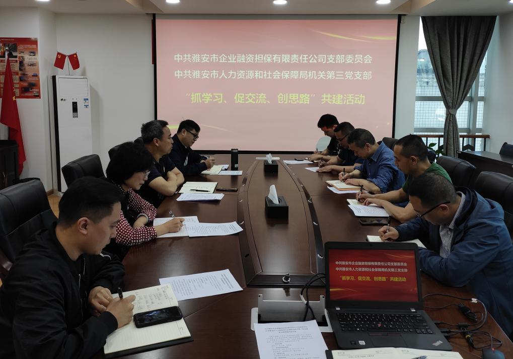 為提升黨建工作水平、促進黨建工作融入中心工作,4月26日,市擔(dān)保公司黨支部與市人社局機關(guān)第三黨支部開展共建活動。